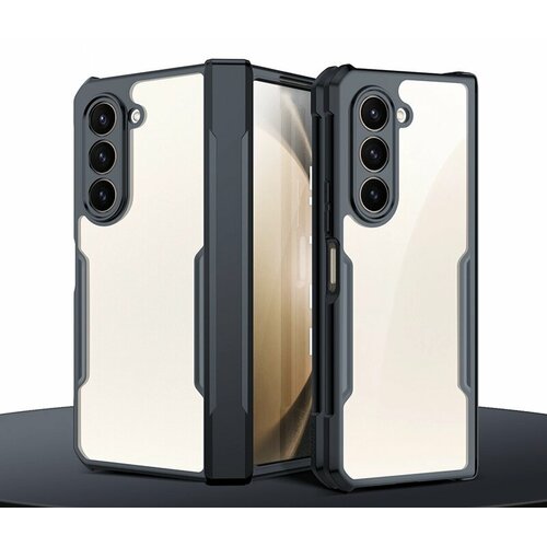 Задняя панель-чехол-накладка MyPads для Samsung Galaxy Fold 5 (SM-F946B) из качественного силикона, c прозрачной пластиковой задней стенкой, с черн.