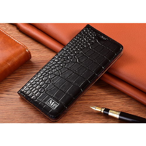 Чехол-книжка MyPads Premium для Sony Xperia 5 из качественной импортной натуральной кожи теленка с фактурной прошивкой рельефа кожи крокодила экзотический