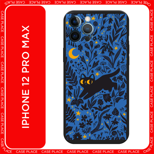 Черный матовый чехол на Apple iPhone 12 Pro Max / Айфон 12 Про Макс с принтом Ночной котик
