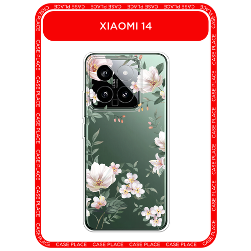 Чехол на Xiaomi 14 / Сяоми 14 с принтом Beautiful white flowers, прозрачный