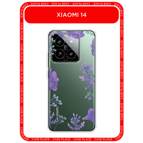 Чехол на Xiaomi 14 / Сяоми 14 с принтом Сиреневая цветочная рамка, прозрачный
