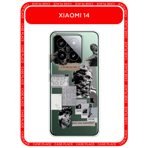 Чехол на Xiaomi 14 / Сяоми 14 с принтом Коллаж греческие скульптуры, прозрачный