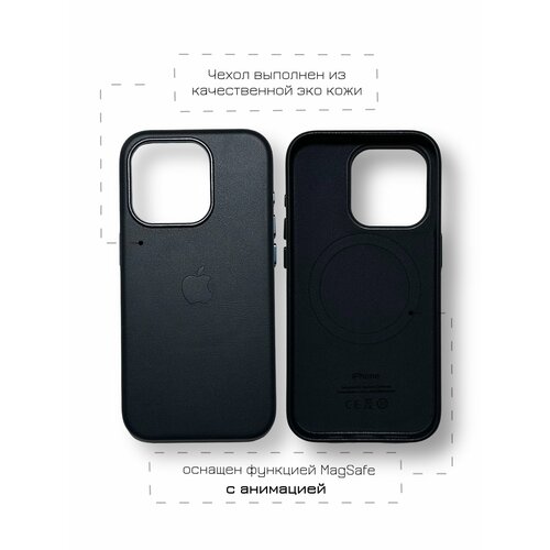 Чехол кожаный для iPhone 15 Pro Max, Leather Case, с поддержкой беспроводной зарядки