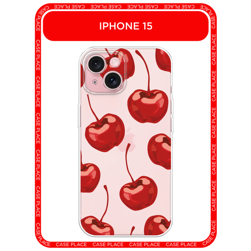 Чехол на Apple iPhone 15 / Айфон 15 с принтом Алая вишня, прозрачный