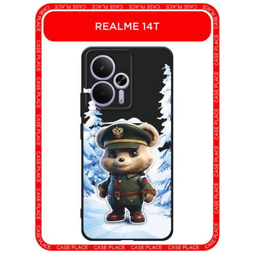 Черный матовый чехол на Realme 14T / Реалми 14Т с принтом Мишка в форме 3