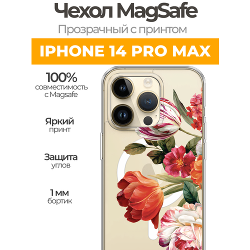 Чехол на Айфон 14 Про Макс (Apple iPhone 14 Pro Max) MagSafe с магнитом и принтом "Весенний букет"