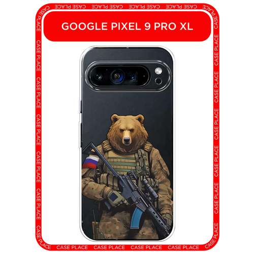 Чехол на Google Pixel 9 Pro XL / Гугл Пиксель 9 Про XL с принтом Медведь с автоматом, прозрачный