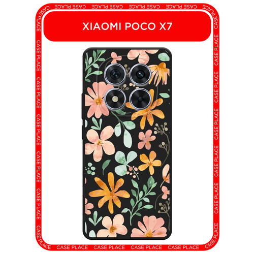 Черный матовый чехол на Poco X7/Xiaomi Redmi Note 14 Pro 5G / Поко X7 с принтом Цветочки и стебли