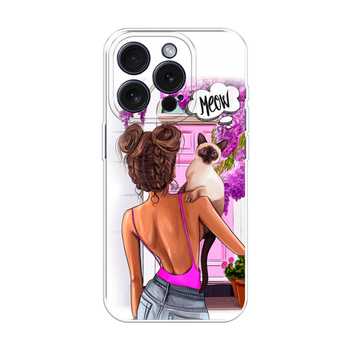 Силиконовый чехол "Девушка с кошкой" на Apple iPhone 15 Pro / Айфон 15 Про