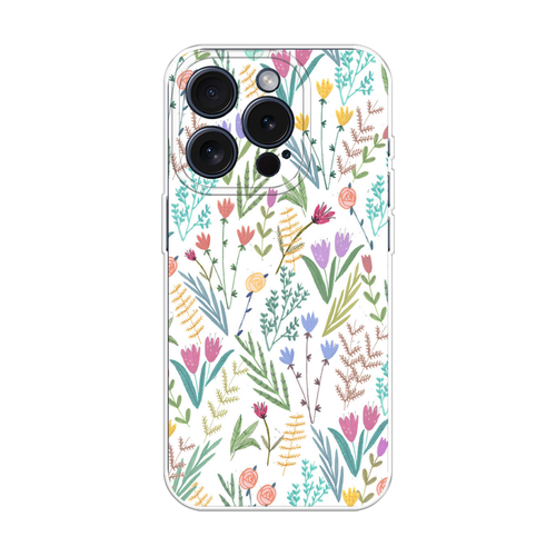 Силиконовый чехол "Полевые цветы рисунок" на Apple iPhone 15 Pro / Айфон 15 Про