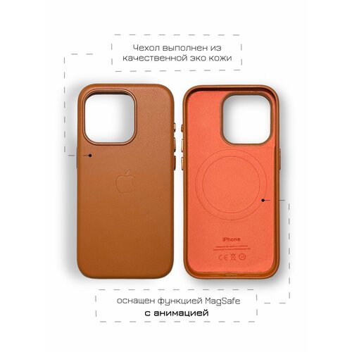 Чехол кожаный для iPhone 15 Pro Max, Leather Case, с поддержкой беспроводной зарядки