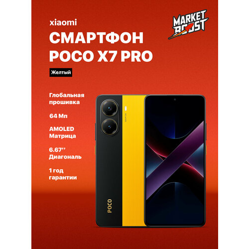 Смартфон Xiaomi POCO X7 Pro 5G 6.67", 12/512GB, Wi-Fi 6, Bluetooth 5.4, RU, YELLOW желтый