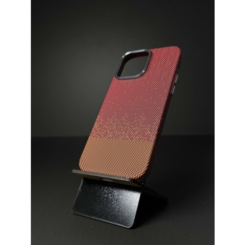 Чехол Айфон 14 Про Макс с МагСейф Кевлар / чехол iPhone 14 Pro Max с MagSafe LUXO Life+, красный, с узором, карбоновый