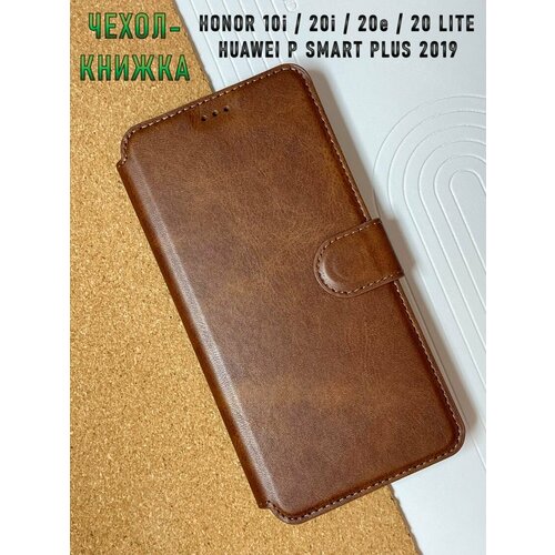 Чехол книжка для Honor 10i, 20i, 20e, 20 lite 2019 / Huawei P Smart Plus 2019 кожаный с магнитной застежкой с хлястиком , с функцией подставки