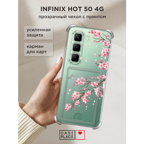 Чехол на Infinix Hot 50 4G (Инфиникс Хот 50 4G) с картой и принтом "Розовая ветка сакуры"