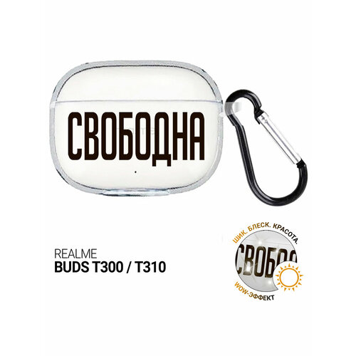 Чехол на Realme Buds T300 / T310 с принтом "Free" прозрачный
