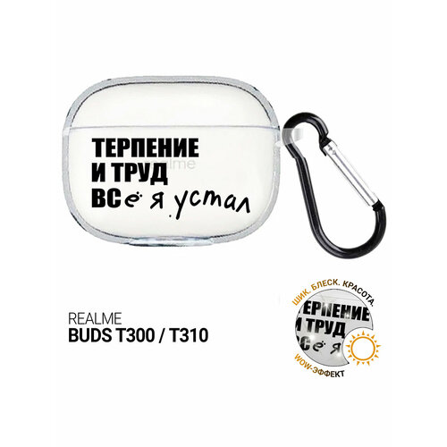 Чехол на Realme Buds T300 / T310 с принтом "Fatigue" прозрачный