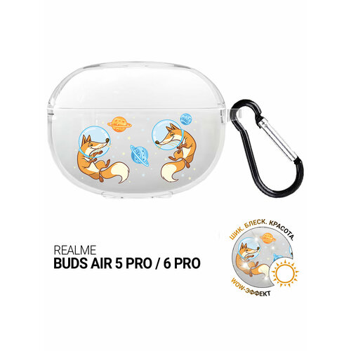 Чехол на Realme Buds Air 5 Pro / 6 Pro с принтом "CosmoFoxes" прозрачный