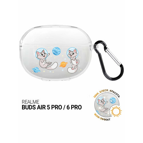 Чехол на Realme Buds Air 5 Pro / 6 Pro с принтом "CosmoCats" прозрачный