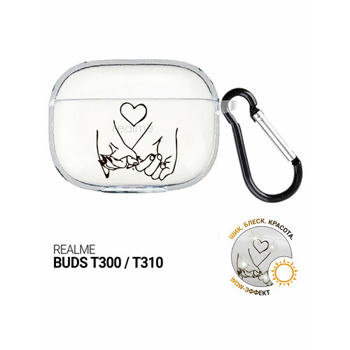 Чехол на Realme Buds T300 / T310 с принтом "Lovers Hands" прозрачный