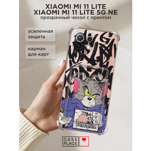 Чехол на Xiaomi Mi 11 Lite/5G NE (Сяоми Ми 11 Лайт/5G NE) с картой и принтом Том и Джерри