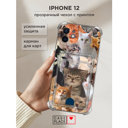 Чехол на Apple iPhone 12 (Айфон 12) с картой и принтом Мемные коты