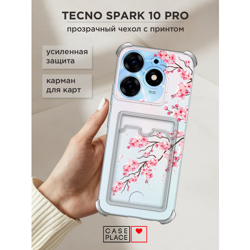 Чехол на Tecno Spark 10 Pro (Текно Спарк 10 Про) с картой и принтом "Розовая ветка сакуры"