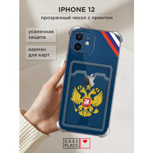 Чехол на Apple iPhone 12 (Айфон 12) с картой и принтом "С гербом России"