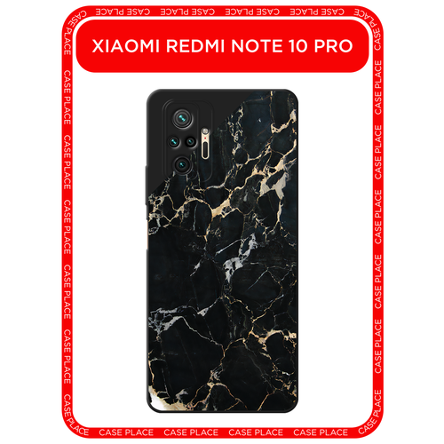 Черный матовый чехол на Xiaomi Redmi Note 10 Pro / Сяоми Редми Нот 10 Pro с принтом Черный мрамор уголок