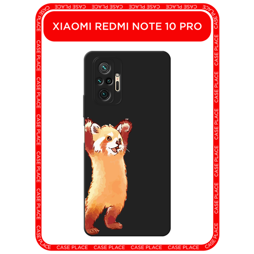 Черный матовый чехол на Xiaomi Redmi Note 10 Pro / Сяоми Редми Нот 10 Pro с принтом Красная панда в полный рост