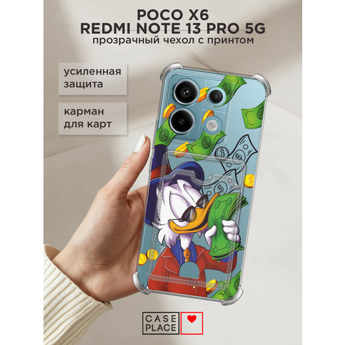 Чехол на Poco X6/Redmi Note 13 Pro 5G (Поко X6/Редми Нот 13 Про 5G) с картой и принтом Скрудж Макдак