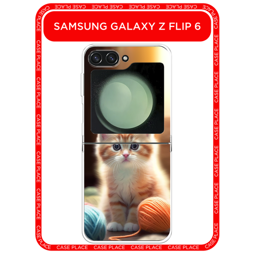 Чехол на Samsung Galaxy Z Flip 6/7 FE / Самсунг Z Flip 6/7 Фе с принтом Рыжий котёнок с клубком