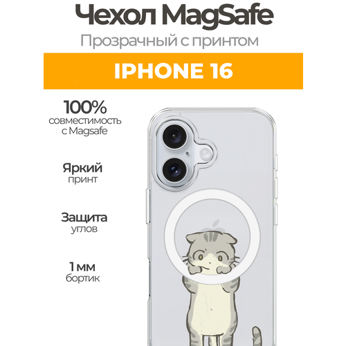 Чехол на Айфон 16е (Apple iPhone 16e) MagSafe с магнитом и принтом "Висящий котик"