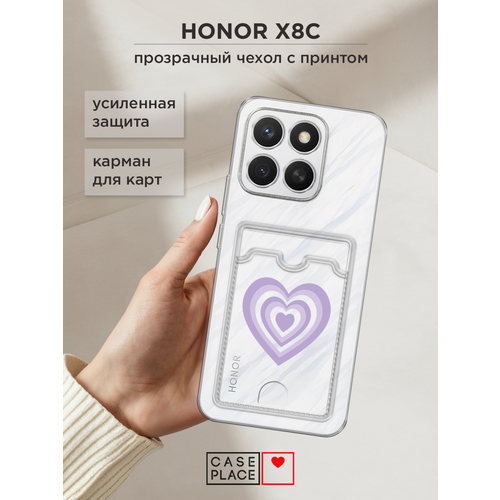 Чехол на Honor X8c (Хонор X8c) с картой и принтом Сиреневое сердечко