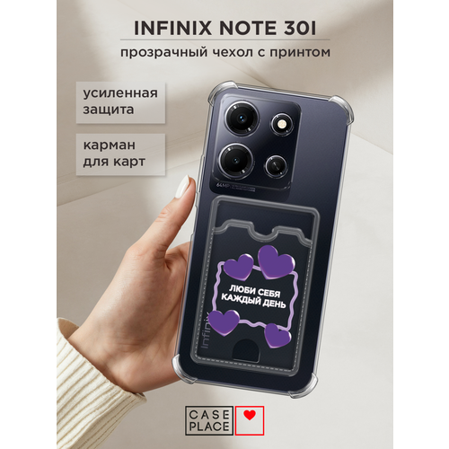 Чехол на Infinix Note 30i (Инфиникс Нот 30i) с картой и принтом Сердечки и надпись Люби себя
