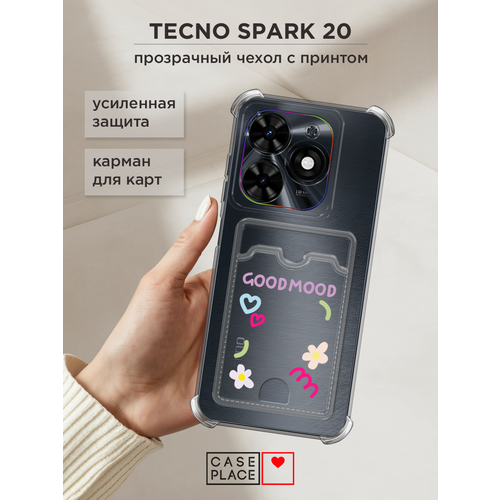 Чехол на Tecno Spark 20/Infinix HOT 40i (Текно Спарк 20/Инфиникс Хот 40i) с картой и принтом Милые цветы и надпись GoodMood