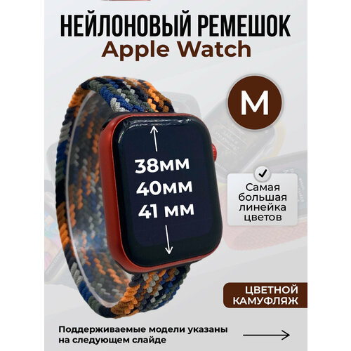 Нейлоновый ремешок для Apple Watch 1-9 / SE (38/40/41 мм), без застежки, цветной камуфляж 2, размер M