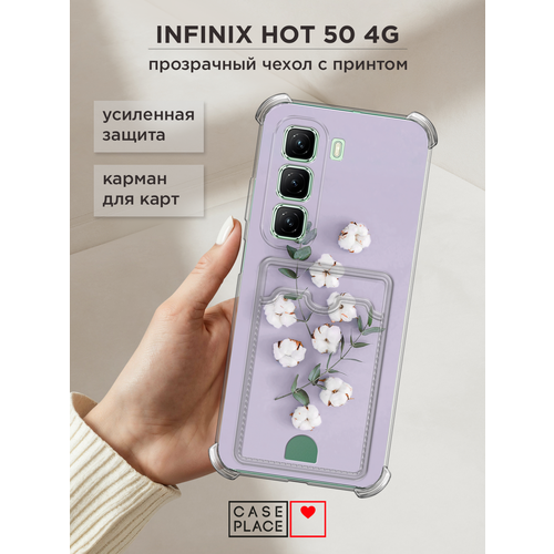 Чехол на Infinix Hot 50 4G (Инфиникс Хот 50 4G) с картой и принтом Веточка хлопка