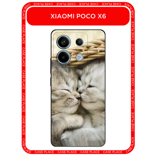 Черный матовый чехол на Poco X6/Redmi Note 13 Pro 5G / Поко Х6/Сяоми Редми Нот 13 Про 5G с принтом Милые котята