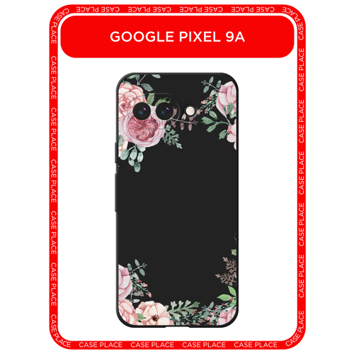 Черный матовый чехол на Google Pixel 9a / Гугл Пиксель 9a с принтом Нежные розы акварель