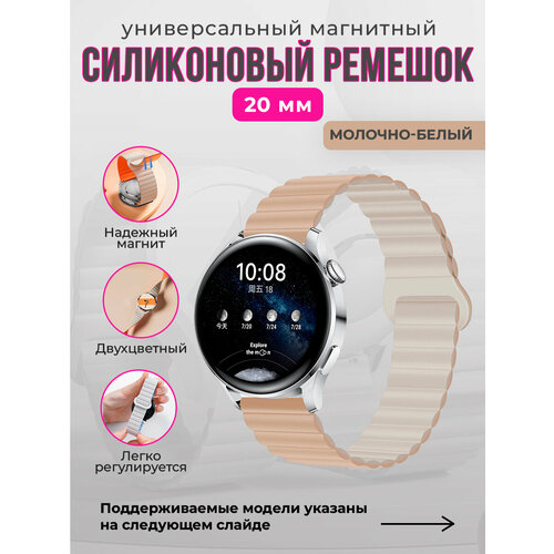 Универсальный магнитный силиконовый ремешок 20 мм, молочно-белый
