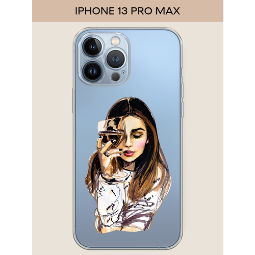 Чехол на Apple iPhone 13 Pro Max / Айфон 13 Pro Max с принтом Девушка с бокалом, прозрачный