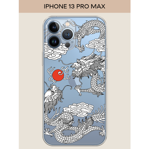 Чехол на Apple iPhone 13 Pro Max / Айфон 13 Pro Max с принтом Драконы с ножом, прозрачный