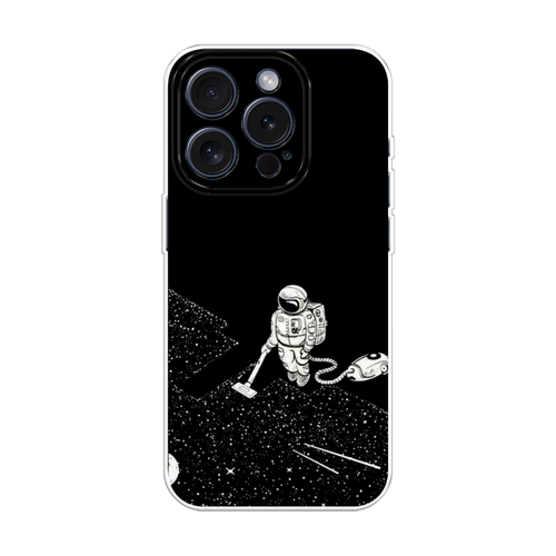 Силиконовый чехол "Космонавт с пылесосом" на Apple iPhone 15 Pro / Айфон 15 Про
