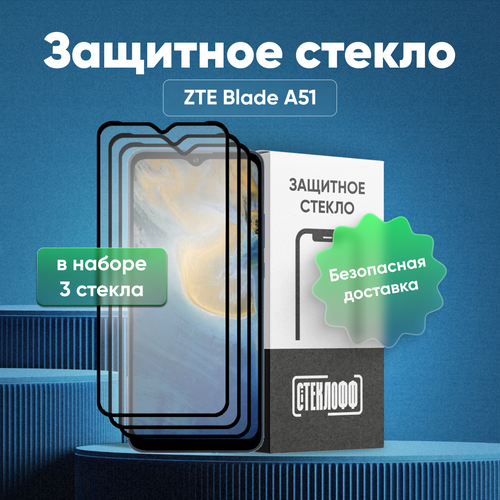 Набор защитных стекол для ZTE Blade A51 c полным покрытием, серия Стеклофф Base, 3 шт