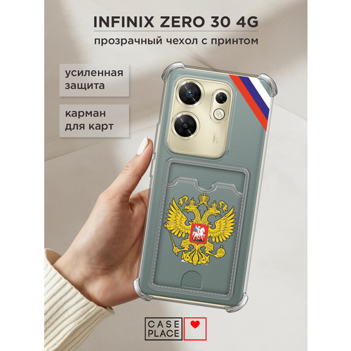 Чехол на Infinix Zero 30 4G (Инфиникс Зеро 30 4G) с картой и принтом "С гербом России"