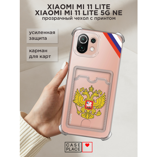 Чехол на Xiaomi Mi 11 Lite/5G NE (Сяоми Ми 11 Лайт/5G NE) с картой и принтом "С гербом России"