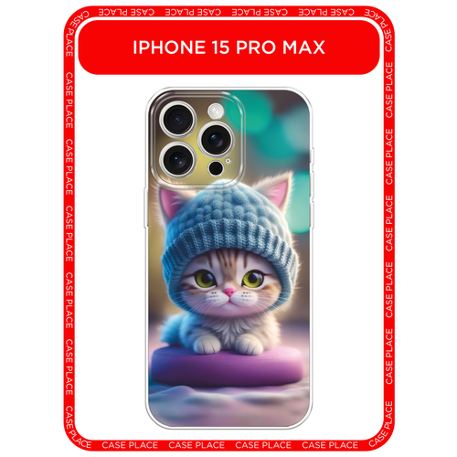 Чехол на Apple iPhone 15 Pro Max / Айфон 15 Про Макс с принтом Котик в голубой шапочке