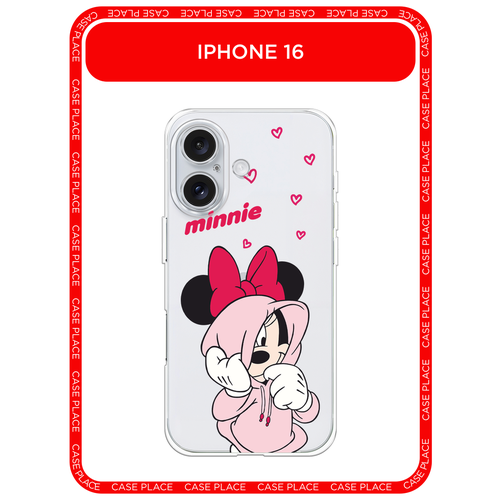 Чехол на Apple iPhone 16 / Айфон 16 с принтом Минни в худи, прозрачный