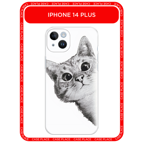 Чехол на Apple iPhone 14 Plus / Айфон 14 Плюс с принтом Кот рисунок черно-белый